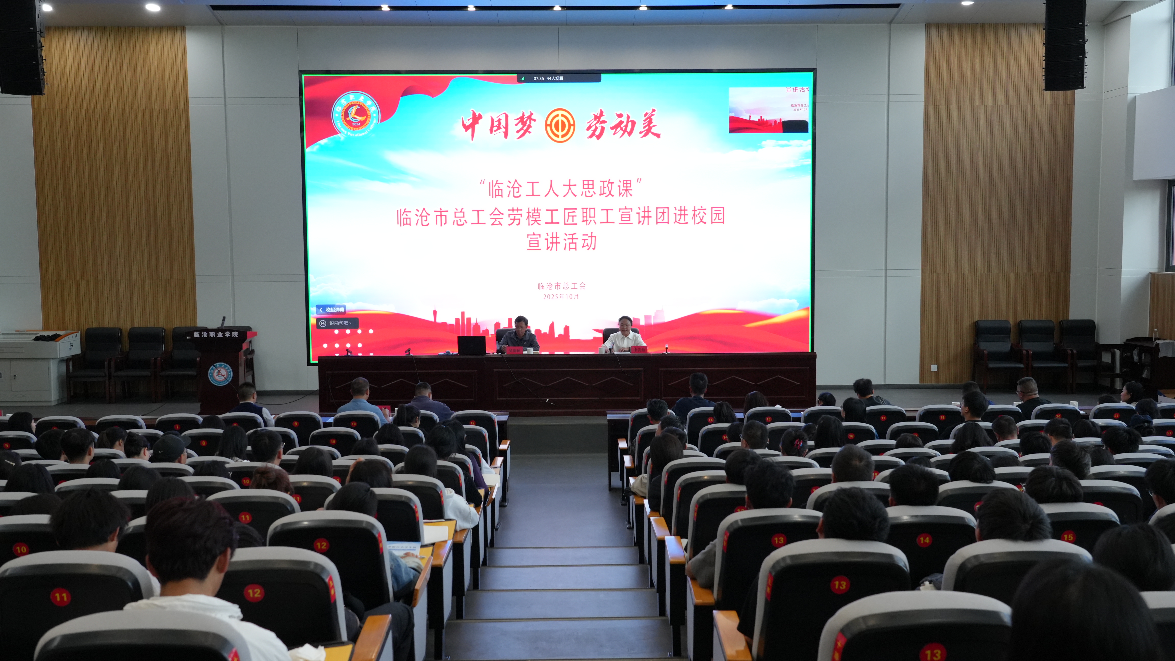 2025年10月29日,临沧市总工会“劳模工匠职工宣讲团”走进Beat365官方网站,开展“弘扬劳模精神、劳动精神、工匠精神”主题宣讲活动。活动以线上线下结合方式覆盖全校1700余名师生。